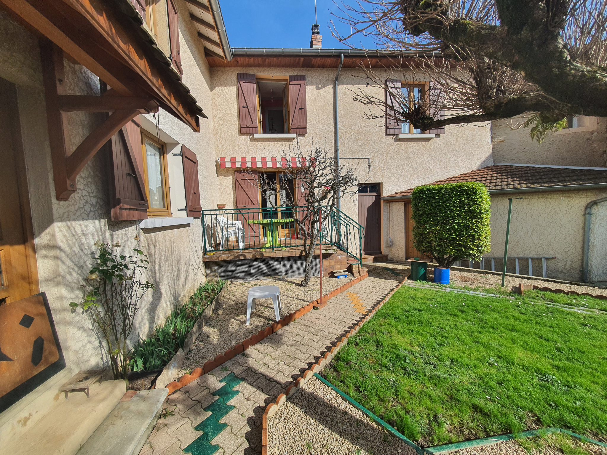 En exclusivité, Sur la commune de Hières-sur-Amby, Grande maison en pierre familiale, à étage, pouvant être divisée en deux logements. Elle se compose en rez-de-chaussée, de deux entrées principales, garage, cuisine indépendante, séjour, salon, dégagement, salle d'eau avec WC, grande douche à l'italienne, 1er escalier accédant à l'étage coté ouest, quatre chambres, espace bureau, salle de bains, WC, dégagement, grenier au dessus, 2ème escalier desservant le séjour coté Est, chauffage électrique, menuiserie bois double vitrage, volets bois, terrasse surélevée, terrain, et petite annexe de rangement extérieur. Des travaux d'amélioration types, isolation, chauffage, certaine huisserie, seront à prévoir. Information d'affichage énergétique sur ce bien : DPE 445 indice G et GES 14 Indice C Les informations sur les risques auxquels ce bien est exposé sont disponibles sur le site Géorisques : www.georisques.gouv.fr La présente annonce immobilière a été rédigée sous la responsabilité éditoriale de Denis THIBAUDON, Agent Commercial mandataire en immobilier, juridiquement et financièrement indépendant, immatriculé au Registre Spécial des Agents Commerciaux (RSAC) du Tribunal de Commerce de Vienne sous le numéro 432 328 193. Pour toute information sur ce bien, veuillez contater Mr THIBAUDON au 06.71.91.21.56.
