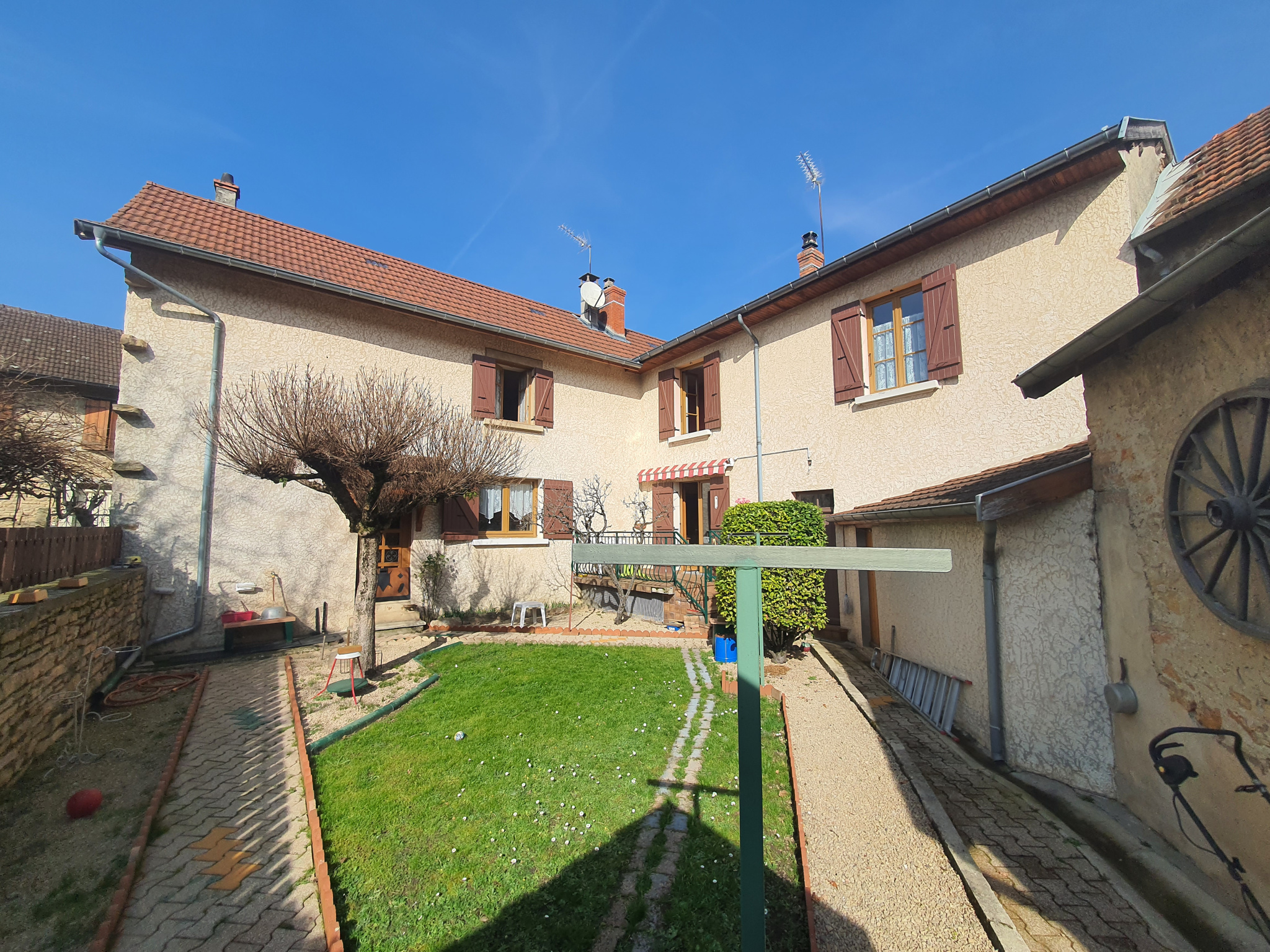 Grande maison en pierre, 7 pièces, garage, terrain, sur Hières-sur-Amby